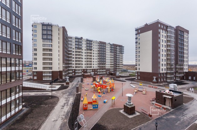 На детской площадке разместились игровые комплексы, карусель, песочница, качели и игровой «рыцарский замок». Setl City выполнила озеленение территории дома – высажены в общей сложности более 3200 деревьев и кустарников, среди которых жимолость, липа, сирень и шиповник.