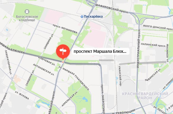 проспект Маршала Блюхера (от Индустриального проспекта до Зыбинской улицы) и Зыбинская улица (от Индустриального проспекта до проспекта Маршала Блюхера),