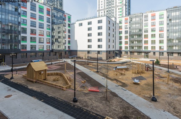 Во внутреннем дворе выполнено благоустройство по улучшенным стандартам ГК «Ленстройтрест»: оборудованы зоны отдыха, пешеходные и велодорожки, игровые площадки для детей, высажены деревья и кустарники, установлены МАФы.