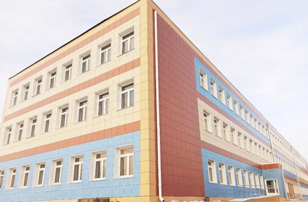 Трехэтажное здание школы, возведенной по нацпроекту «Образование», построили на монолитном железобетонном фундаменте, стены сделали из многоуровневой системы с несущим слоем из силикатного кирпича с вентилируемыми фасадами.
