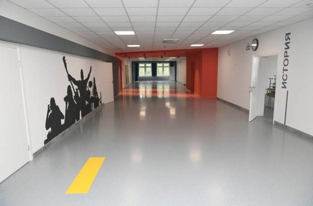Внутри здания и на территории объекта созданы все необходимые условия для детей и их комфортного обучения. В школе оборудованы три спортивных зала: тренажёрный, общий, а также зал для занятий с детьми, отнесёнными по состоянию здоровья к специальной медицинской группе. 3 этажа школы соединяет лифт.