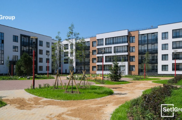 Во внутреннем просторном дворе оборудованы детские игровые площадки SetlKids, фитнес-станции SetlSport и уютные зоны отдыха для взрослых. Вокруг высажены деревья, декоративные кустарники, цветущие травы, обустроены извилистые пешеходные дорожки.