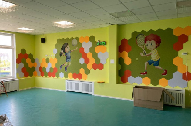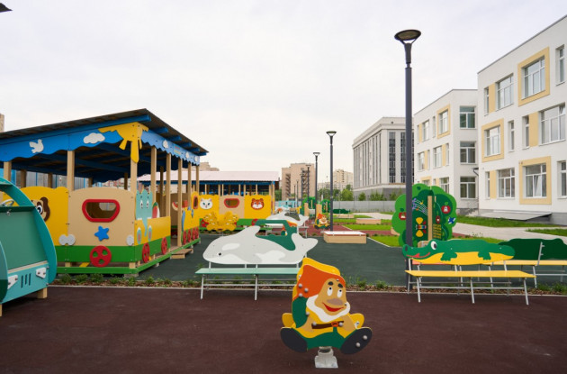 Интерьер украшен сказочными изображениями, на территории высажены деревья, оборудованы игровые площадки с удобными навесами и специальными зонами для занятий физкультурой.