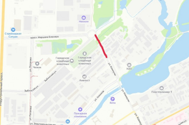Улицу Коммуны начинают удлинять на север до пр. Маршала Блюхера. Выдано разрешение на прокладку участка от улицы Химиков до проспекта Маршала Блюхера.