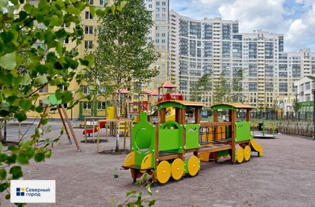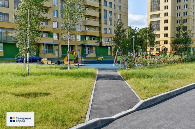 Во дворе Green City «Северный город» создал настоящий парк – с соснами, березами, кленами, бульварами для прогулок, зонами отдыха для жителей всех возрастов. Во второй очереди комплекса высажено 75 взрослых деревьев-крупномеров высотой от 5 до 7 метров. Взрослые растения радуют глаз уже сегодня, а не через четыре-пять лет. Общая площадь озеленения только на второй очереди составляет 7,5 тыс. кв. метров, включая газоны, – как футбольное поле на чемпионате мира! Важно, что двор жилого комплекса свободен от автомобилей: здесь запрещена парковка и нет движения.