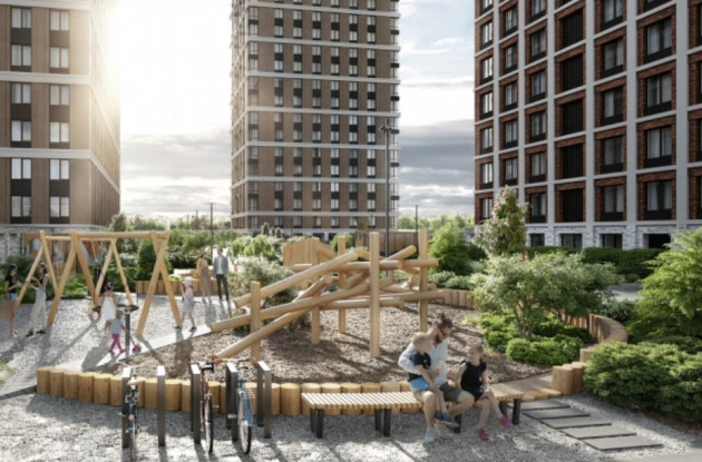 Общедоступная часть территории «Струн» – это парк с пешеходным бульваром, ресторанами и кафе, открытый для всем горожан. Приватная территория – это закрытые дворы, поднятые на стилобат высотой 6 метров и предназначенные только для жителей дома. Одна из ключевых деталей благоустройства: между приватными дворами двух очередей будет перекинут пешеходный мест, под которым будет проходить бульвар. При этом площадь одной только приватной части составит 11 000 кв. метров, площадь общественного парка – еще 13 000 кв. метров.