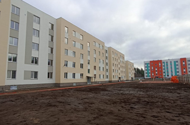 На проспекте Кирова в Подпорожье продолжается строительство нового жилого комплекса. Для расселения аварийного жилья будет возведено шесть домов общей площадью более 30,3 тысяч «квадратов». Первый корпус на 135 квартир был введен в эксплуатацию в ноябре 2021 года.
