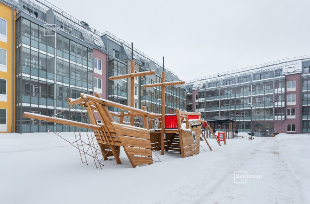 Фасады жилых домов оформлены в гармоничных оттенках от песочного до коричнево-шоколадного с серыми мансардами. Дворы свободны от машин: пространство каждого благоустроено игровыми и спортивными площадками, а для комфортного отдыха – уличные лежаки и качели под навесом.