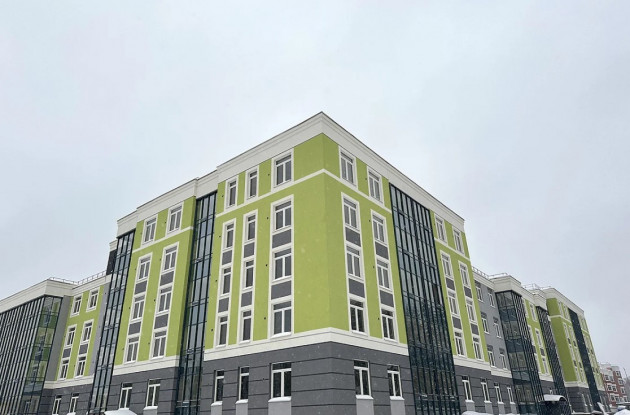 Дома имеют оригинальный облик, который соответствует общей стилистике квартала, но при этом отличается индивидуальностью. Для фасадов выбраны нежно-салатовые тона в сочетании с лаконичными серыми и белыми оттенками.