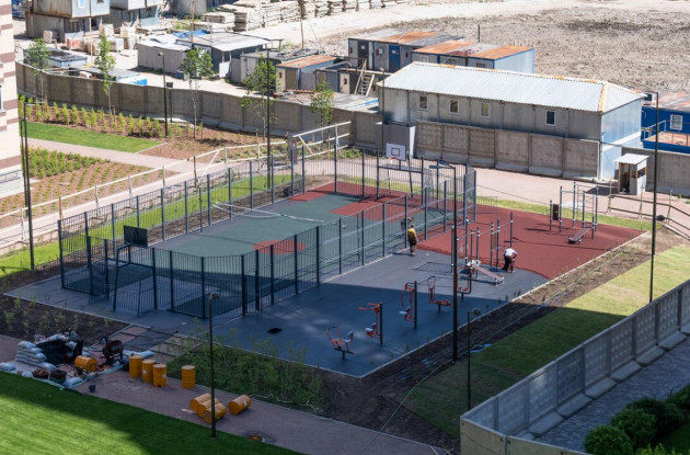 Вместе с последним корпусом в квартале сдана и большая спортивная площадка для командных игр.