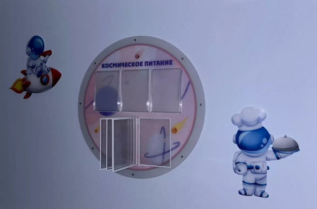 В трехэтажном здании созданы все условия для развития и удобства детей разного возраста. Садик обустроен по современным стандартам, включая бассейн, спортивный и музыкальный залы. Оформление одного садика выдержано в космической стилистике.