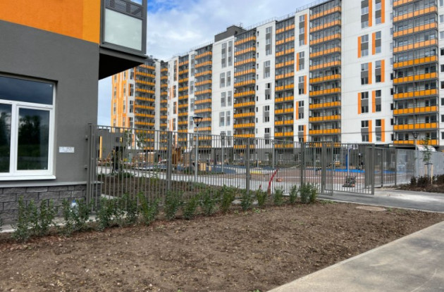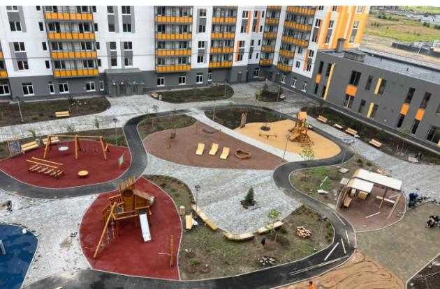 В числе собственной инфраструктуры два детских сада на 210 воспитанников каждый, школа на 825 учащихся, поликлиника. Помимо этого будет выполнено благоустройство придомовой территории, организованы игровые и спортивные площадки, площадки для выгула собак, открытые парковки, дворы сделают закрытыми для машин, в каждой парадной выделят зоны для хранения колясок и велосипедов, входы в подъезды организуют с двух сторон (с улицы и двора).