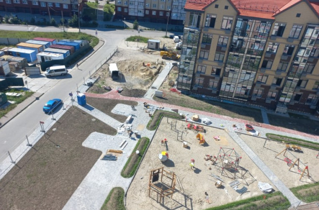 Территория вокруг нового дома благоустроена и озеленена: высажены кустарники, многолетние цветы и луговые травы, а осенью застройщик посадит деревья. Рядом с домом обустроены площадки для игр и отдыха, проложена велодорожка. Для детей разных возрастов установлены игровые комплексы с горками, качелями, лабиринтом, батутом и различными "лазалками", а для физических упражнений – спортивная площадка с тренажерами и турниками.