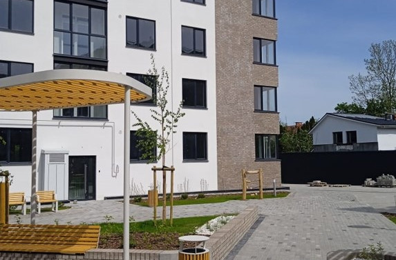 Также выполнено озеленение. По всей территории комплекса высажены декоративные кустарники и деревья, обустроена зона ТБО и установлено придомовое освещение.