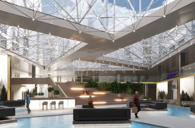 Главный вход в комплекс будет организован с Торжковской улицы и акцентирован четырехэтажным проемом, который будет формирует небольшую аванплощадь. Второй четырехэтажный проем с открытыми террасами ресторана будет расположен со стороны Лисичанской улицы.