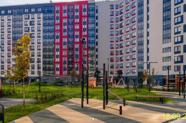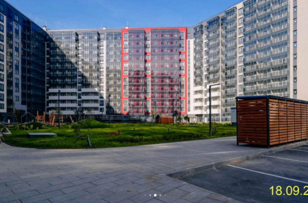 Это 12-этажное здание, состоящее из семи секций общей площадью около 36 000 квадратов. В первой очереди построены 1132 квартиры, а также 300 машиномест в девятиуровневом паркинге.