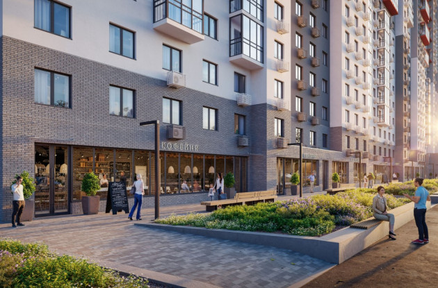 Дворовая территория комплекса будет закрыта, свободна от машин и превратится в небольшой парк, где появятся зоны игр и отдыха для всех возрастов, разнообразное озеленение, крытые площадки и арт-объекты.