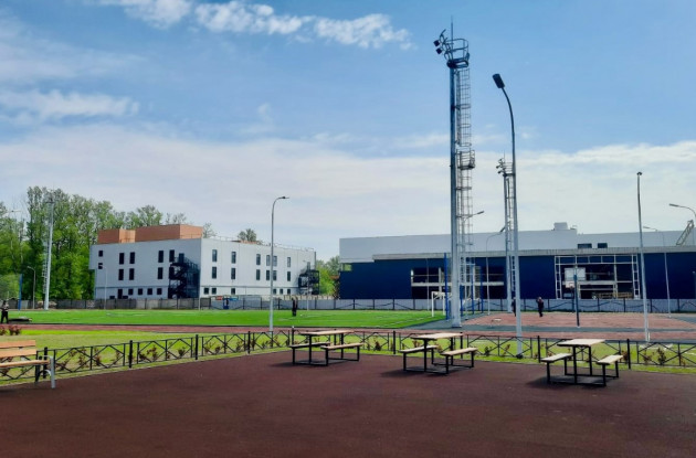 Девелопер выполнил масштабное благоустройство территории школы, площадь озеленения составила более 15 тыс. кв. м. На территории школы обустроена площадка для школьных мероприятий на открытом воздухе.