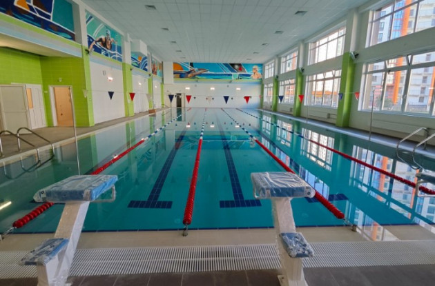 Два бассейна (10х6 м и 25х11 м) с раздевалками и душевыми.