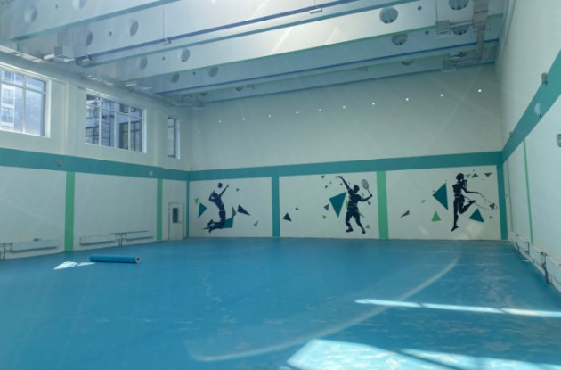 Большой спортивный зал с естественным освещением.