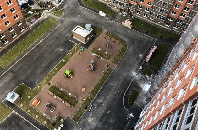 Кирпично-монолитный жилой комплекс. Элементы благоустройства: площадки для игр детей и отдыха взрослого населения, а также занятий физкультурой с набивным покрытием располагаются на прилегающих участках в соответствии с утвержденным проектном