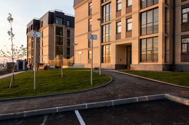 - площадки для отдыха взрослого населения с установленными скамьями и малыми архитектурными формами. Тротуары у входов оборудованы местными понижениями бортовых камней в местах пересечения с проездами для возможности передвижения по территории маломобильных групп населения. Предусмотрена система наружного освещения проездов, тротуаров, внутридворовой территории по расчету освещенности территории.