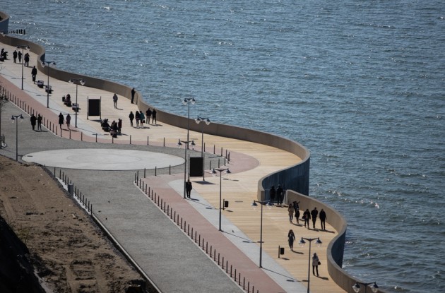 Деревянная часть настила пропитана антибактериальным и огнезащитным покрытием. Он выполнен из лиственницы, это материал, на котором строились многие города, включая Петербург. Характеристики лиственницы такие, что в морской воде она не поддается гниению, особенно при пропитке.