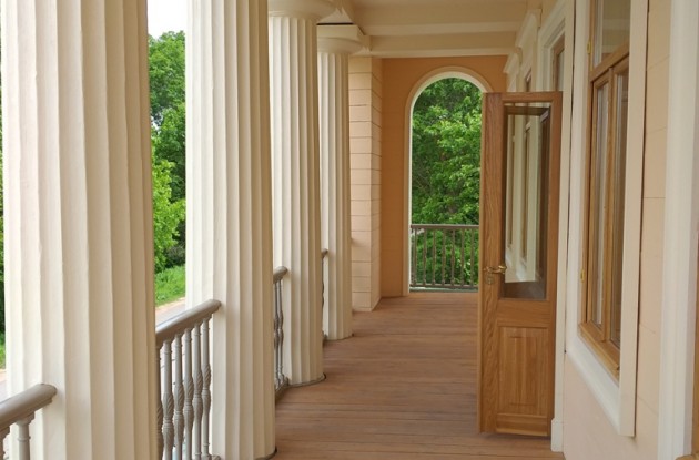 Сейчас лоджия с четырьмя дорическими колоннами, увенчанными деревянными капителями, восстановлена, осталось установить чугунную балюстраду. Два ограждения были некогда украдены, их тоже пришлось восстанавливать. Снаружи здание начали окрашивать в исторический кирпичный цвет, а пока оно - светло-бежевое. Окна с деревянными наличниками и верхними украшениями — такие же, как были в далёком прошлом. Поверху установлены светильники, смонтированы все внутренние инженерные коммуникации. Восстановлены даже угловые камины и фальшдверь по чертежам 1826 года.