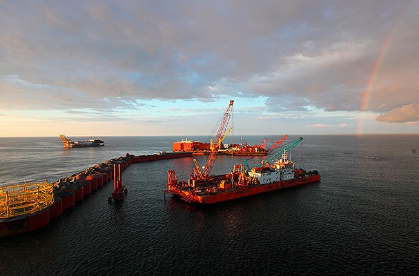 плавучая регазификационная установка в России. Судно перевозит СПГ (емкость