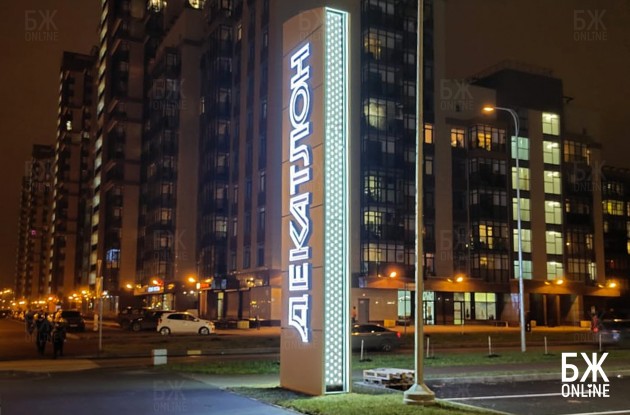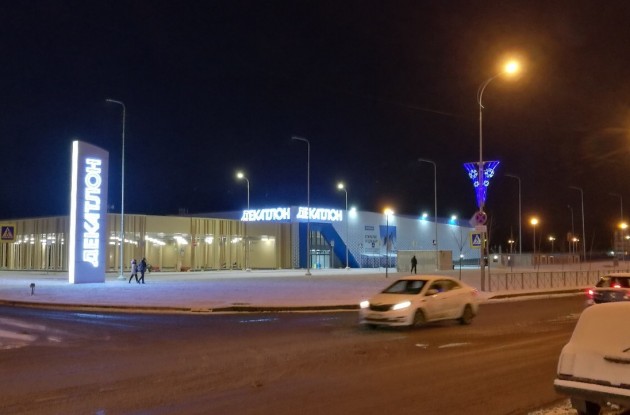 Спортивный гипермаркет сети французской сети «Декатлон» построено в Балтийской жемчужине. Само здание «Декатлона» расположилось ближе к Матисову каналу, а со стороны улицы Адмирала Трибуца организовали открытую парковку. Размер всей осваиваемой территории — 3 га. С разрешения КГИОП высота здания составила 10 метров. К гипермаркету пристроен паркинг. Это первый самостоятельный магазин французского производителя в Петербурге. Всего в городе работают пять магазинов Декатлон», все – в составе торговых центров. Охранные ограничения здесь установлены, потому что рядом находятся исторические парки – в частности, Полежаевский и Новознаменка.