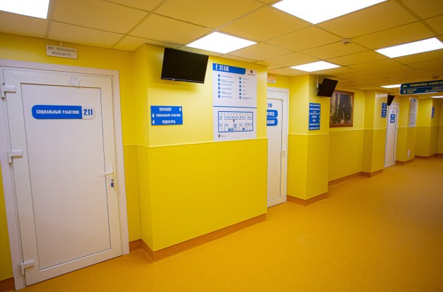Четырехэтажное здание ГБУЗ «Городская больница № 40 Курортного района» включает помещения для посетителей с гардеробом и регистратурой, помещения для охраны, три бокса с отдельными санузлами на первом уровне. Остальные три этажа состоят из кабинетов для ведения приема пациентов, также в поликлинике есть зал лечебной физкультуры и бассейн.