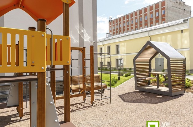 На участке 0,43 га появился 10-этажный дом комфорт-класса. Он трёхсекционный, его общая площадь составила 13 тыс. кв. м. Общее количество квартир — 160 шт. Они распределены по 3-8 на этаж. Высота потолков колеблется от 2,74 до 3,6 м. Заявлена черновая отделка. Фишками стали террасы, а также отсутствие в квартирах несущих стен для легкой перепланировки. В доме работают четыре пассажирских лифта.